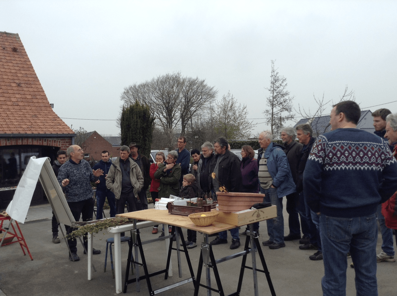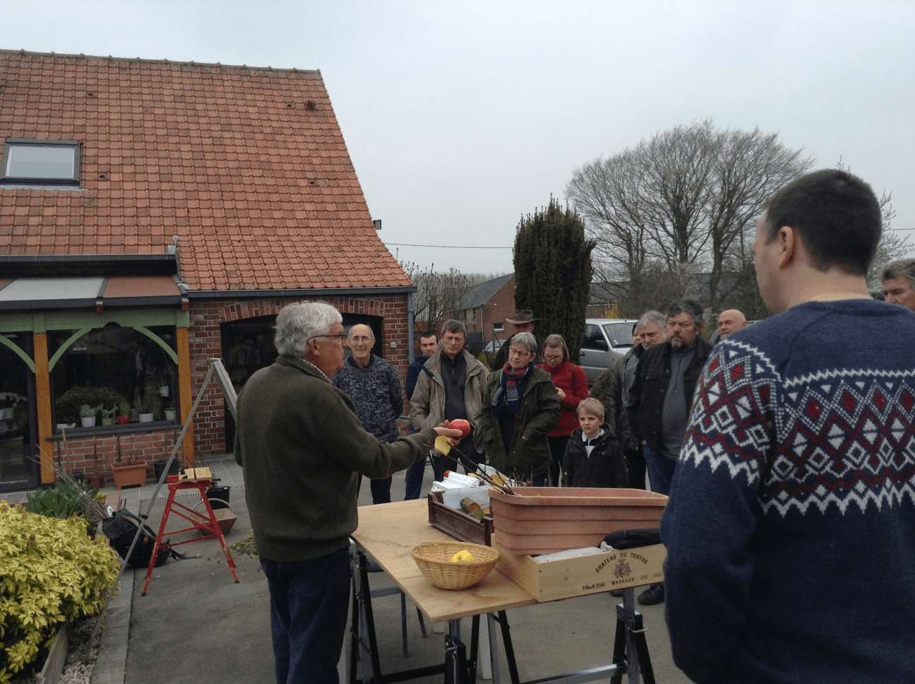 Francis a expliqué les principes du greffage et chacun a pu s'exercer à la réalisation d'une greffe. Rappelons que l'association propose chaque année une commande groupée de portes-greffes et organise une bourse aux greffons pour multiplier les variétés anciennes de fruitiers ignorées de l'arboriculture moderne. Les participants ont pu découvrir la "Précoce de Wirwignes", la "gris baudet", la "Lanscailler", la "Cabarette" et greffer (entre autres) ces variétés typiques de notre région.