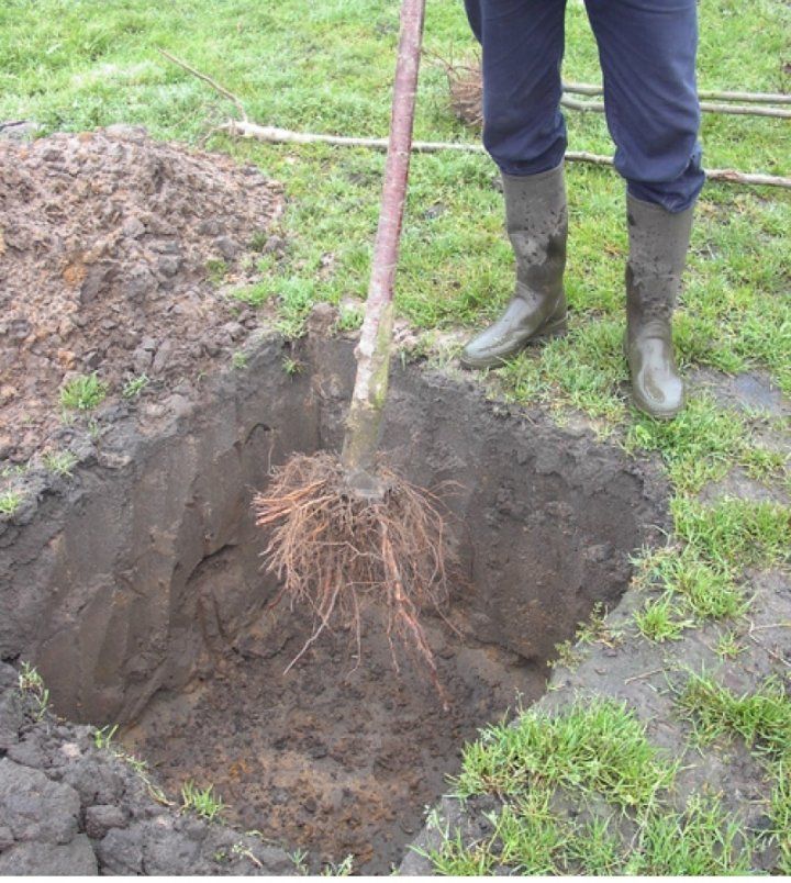 La préparation de l’arbre : si l’arbre est en container, il faut impérativement démêler les racines pour les étaler dans le trou préparé.